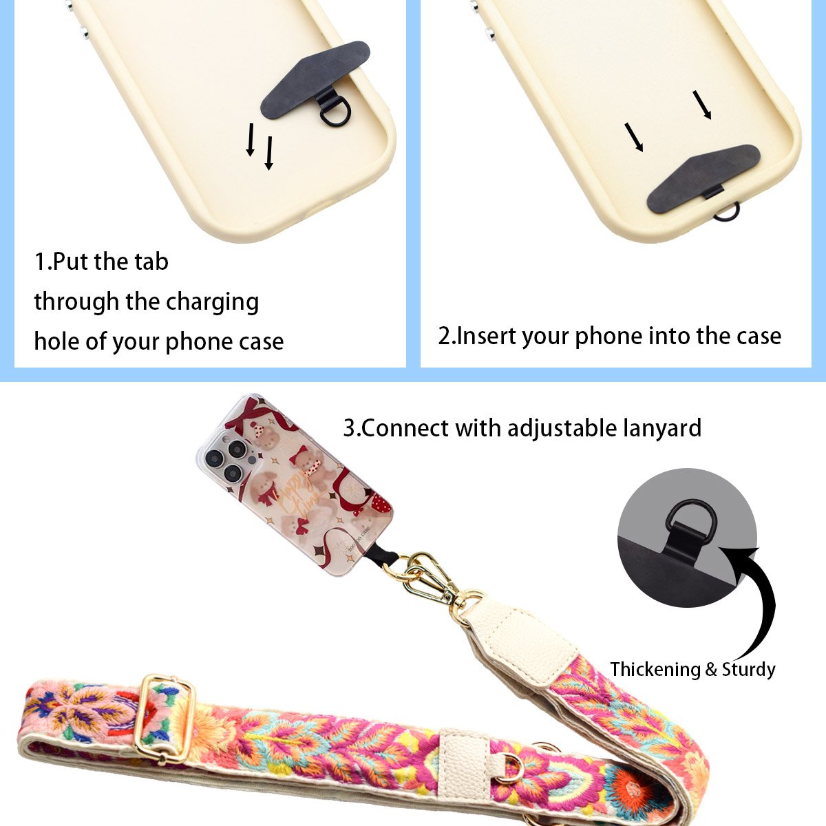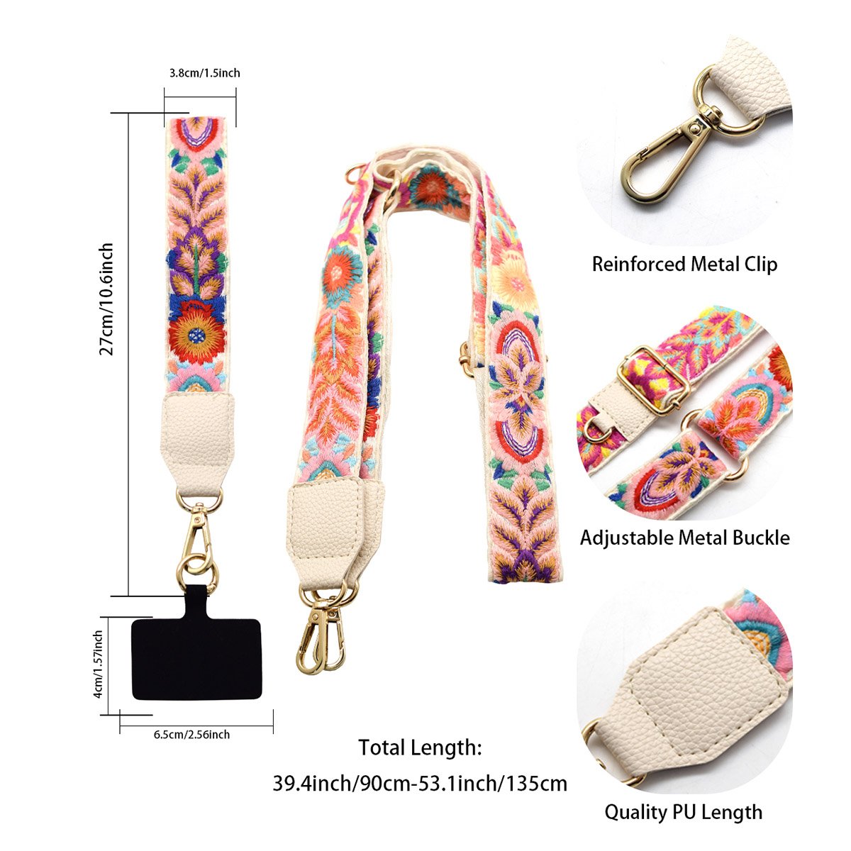 - PERSONALITY PATTERN: The unique embroidery pattern and cute style of the phone strap can meet your personalised look and make your phone more attractive. In addition to cell phones, your keys, ID case, wallets, headphones, bag and cameras are equally applicable.
