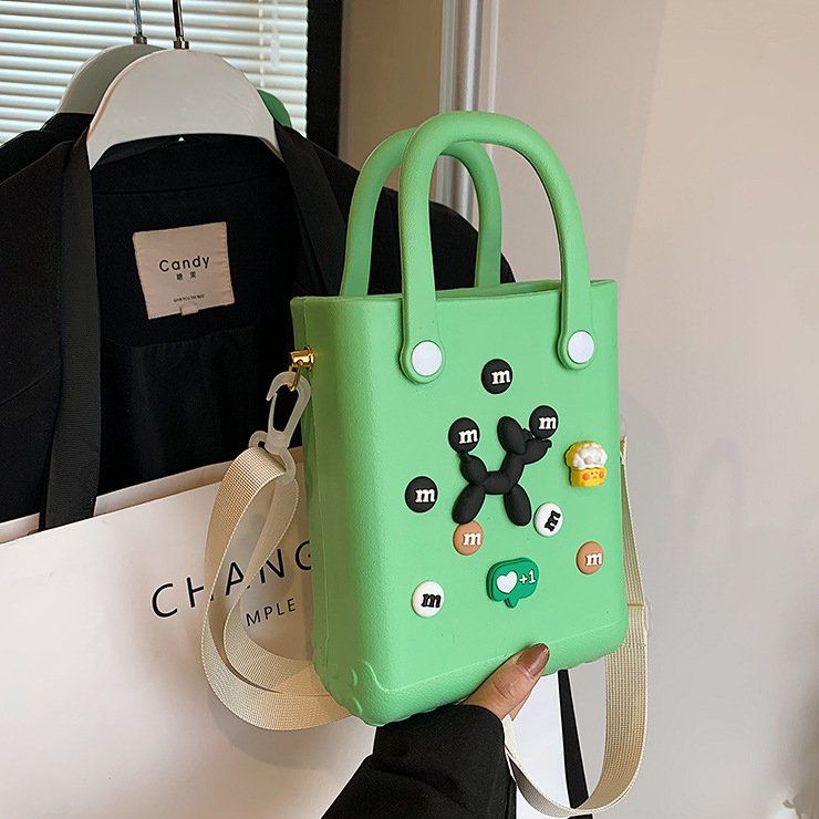 DIY macaron colored beach bag,Equipped with adjustable straps green