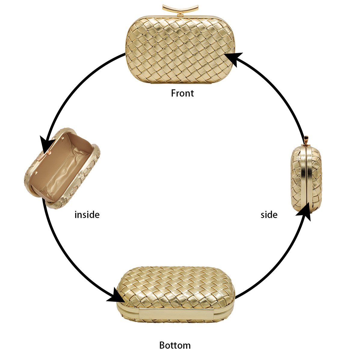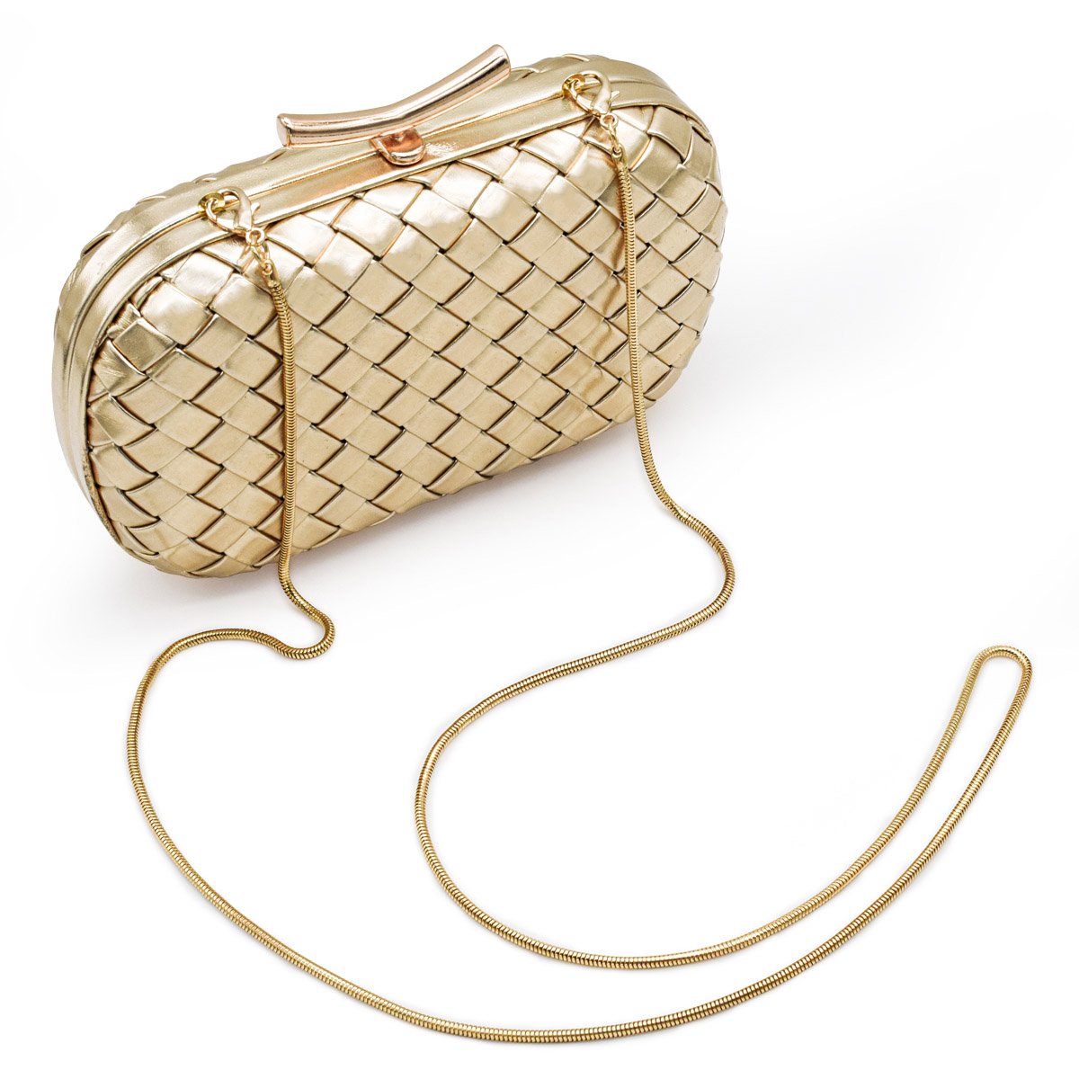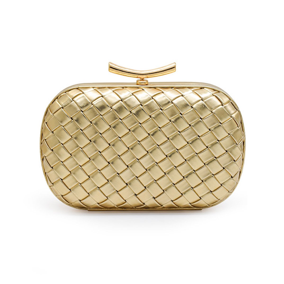 PU Leather Woven Wedding Guest Clutch Metal Chain Shoulder Crossbody Bag Gold