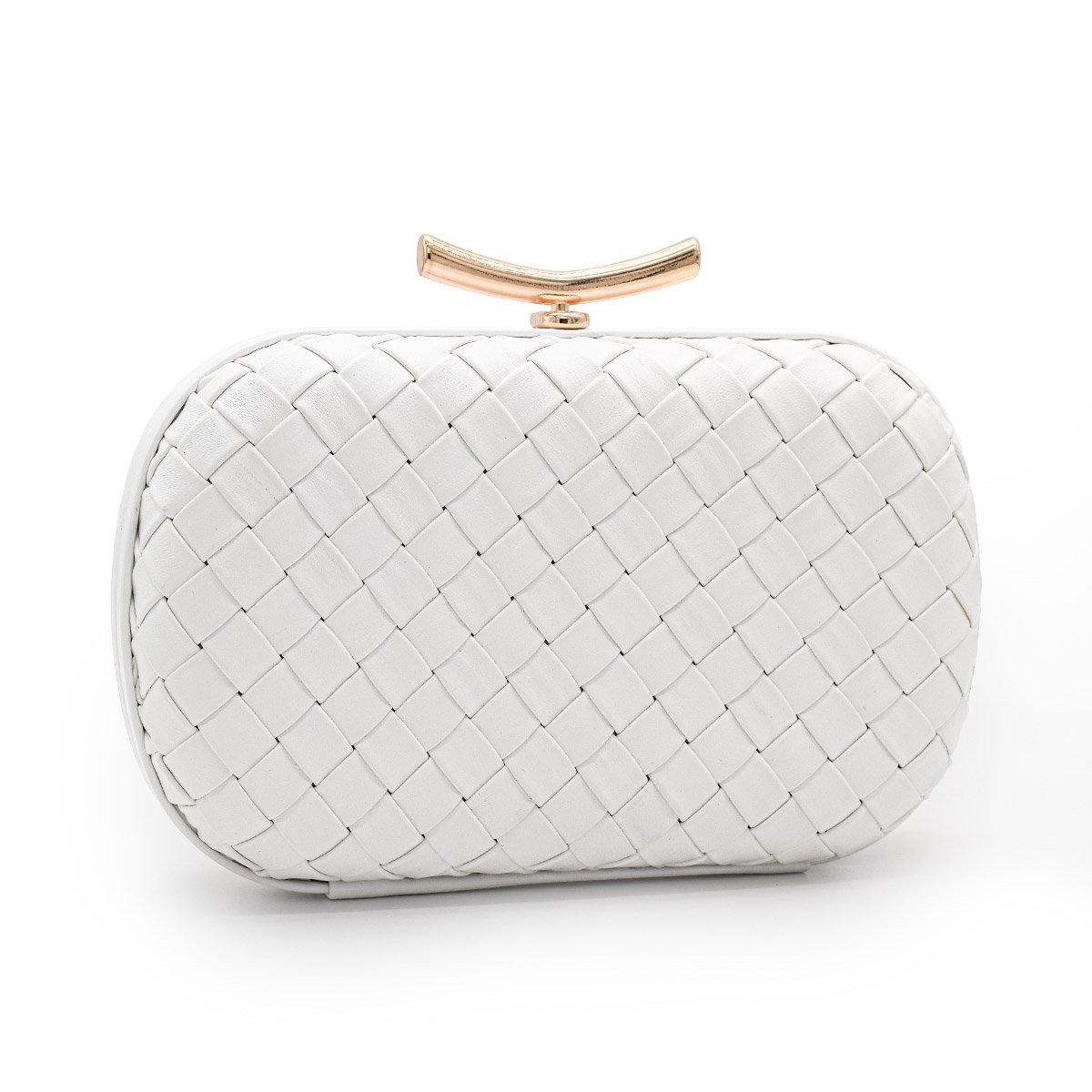 PU Leather Woven Wedding Guest Clutch Metal Chain Shoulder Crossbody Bag White