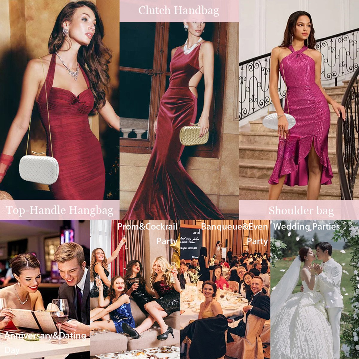 🌼【Multiple styles】 This white clutch comes with one metal chain to meet different styles of use, and you can use it as a bridal clutch, wedding guest clutch, or formal clutch. Suitable for weddings, dances, banquets, cocktail parties, family gatherings, etc.