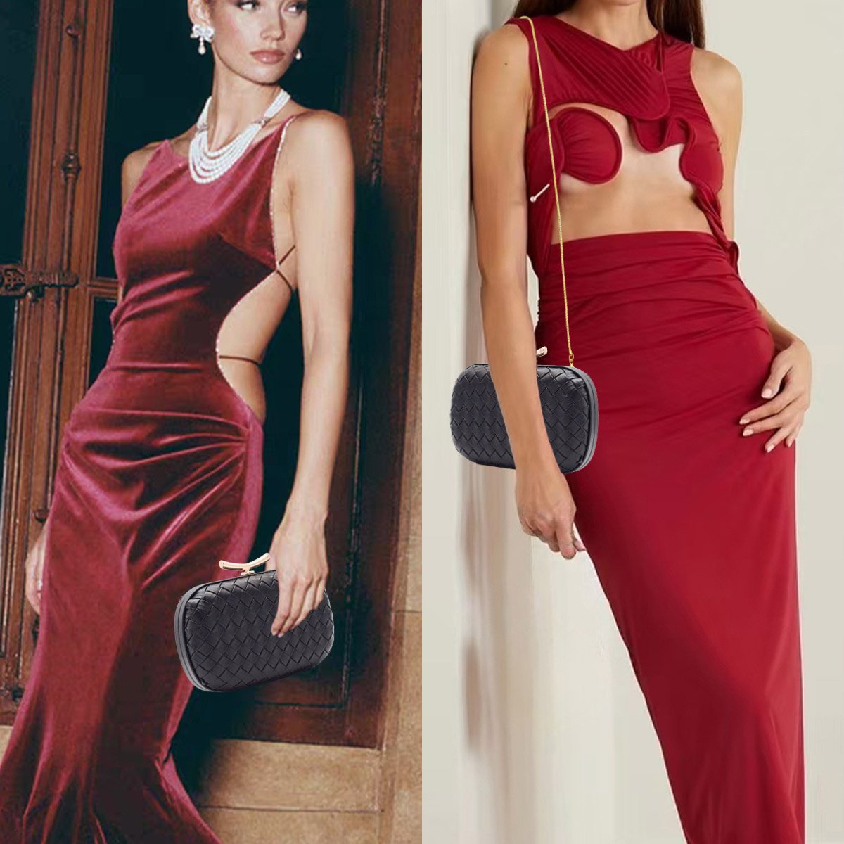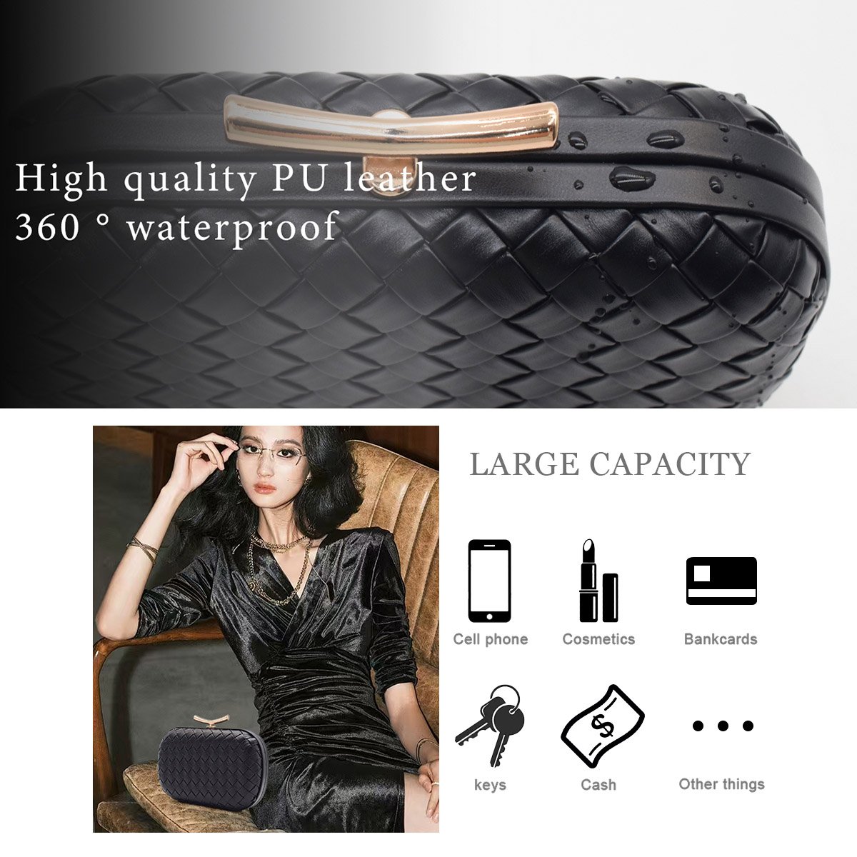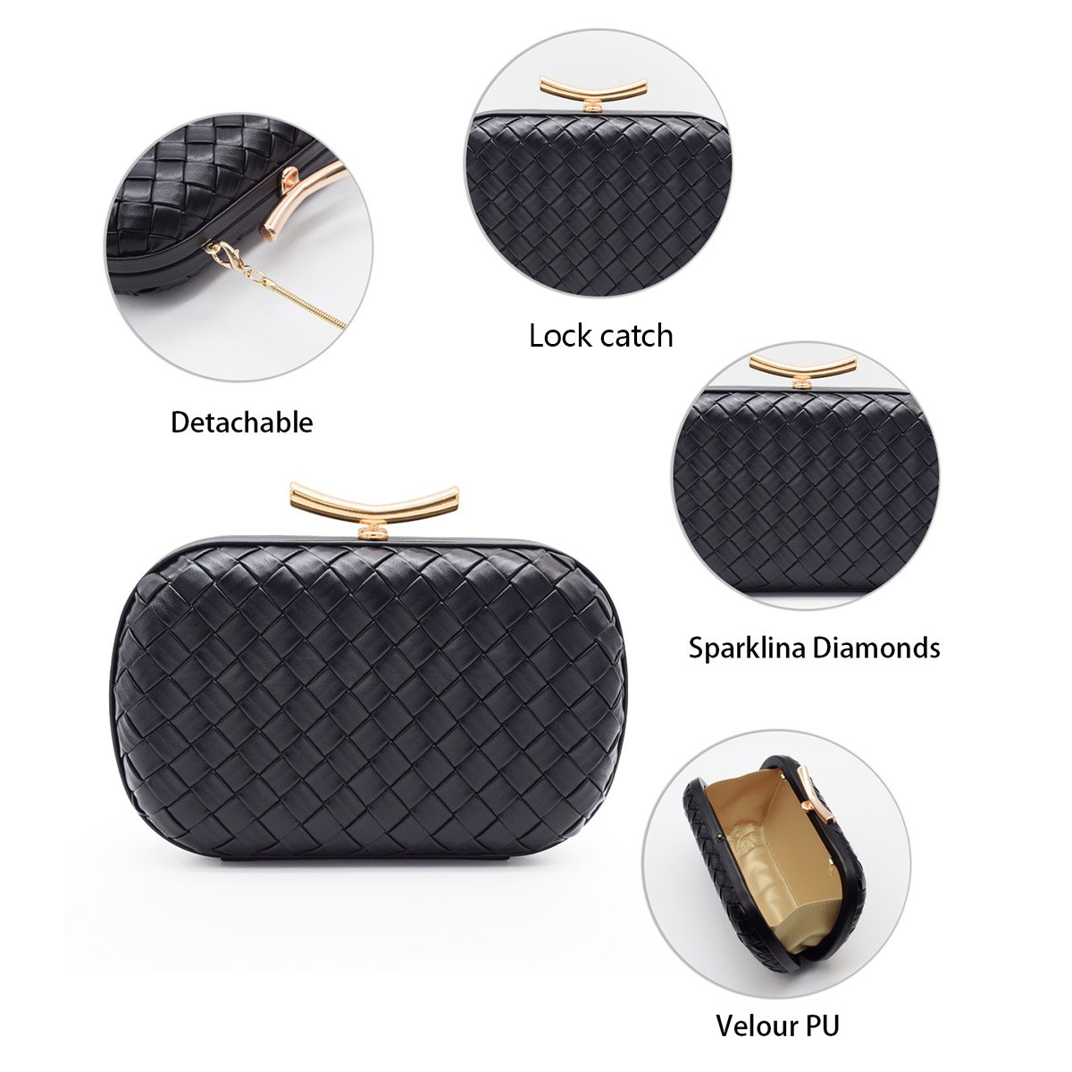 - 🌼【Material】 Our white evening clutch purses is made of soft PU leather, hand-woven, and have a high-quality gold decoration, durable, smooth, exquisite, fashionable, and personalized geometric shape.