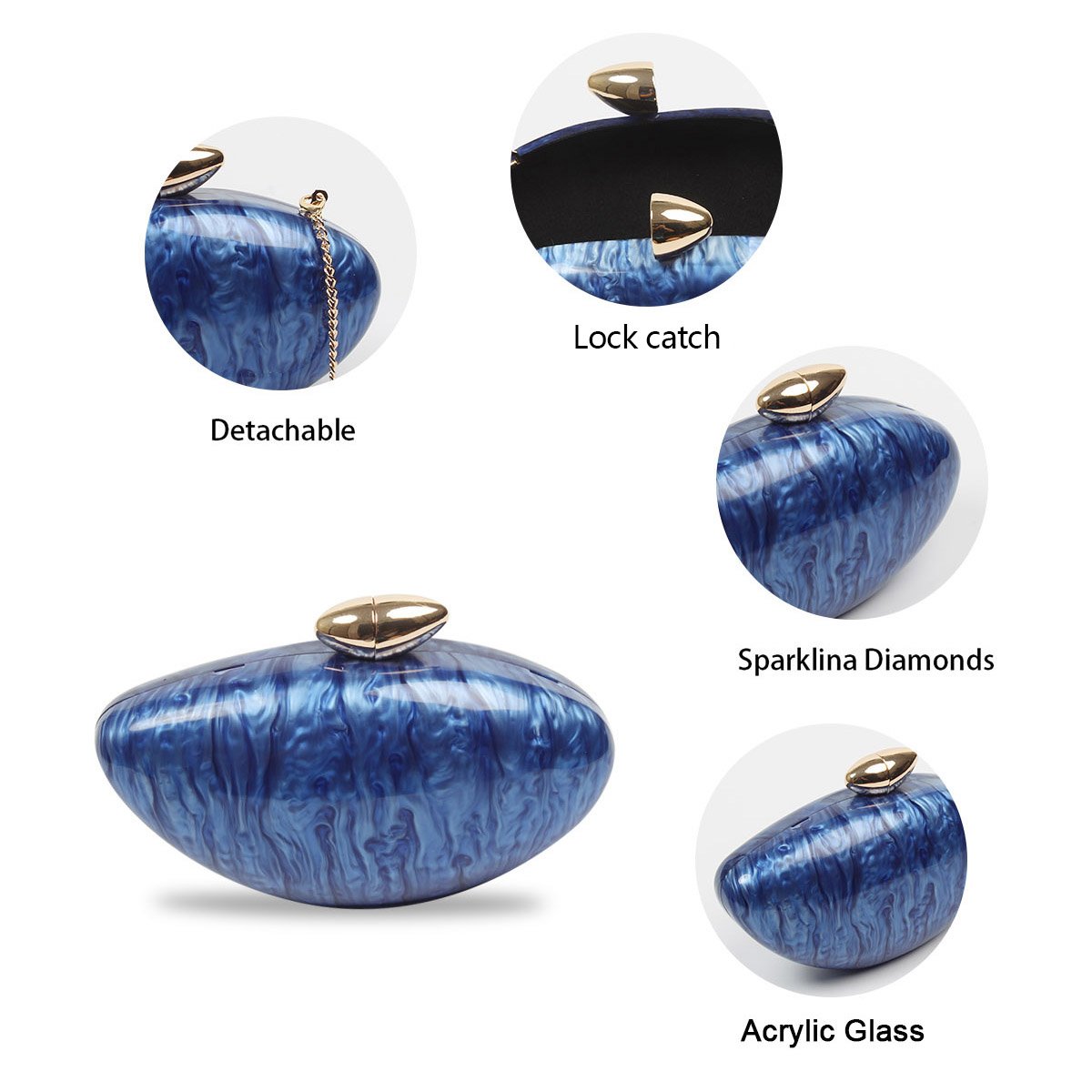- 🌼【Material】 Our white evening clutch purses are made of glossy acrylic, durable, smooth, exquisite, fashionable, and personalized seashell geometric shapes.