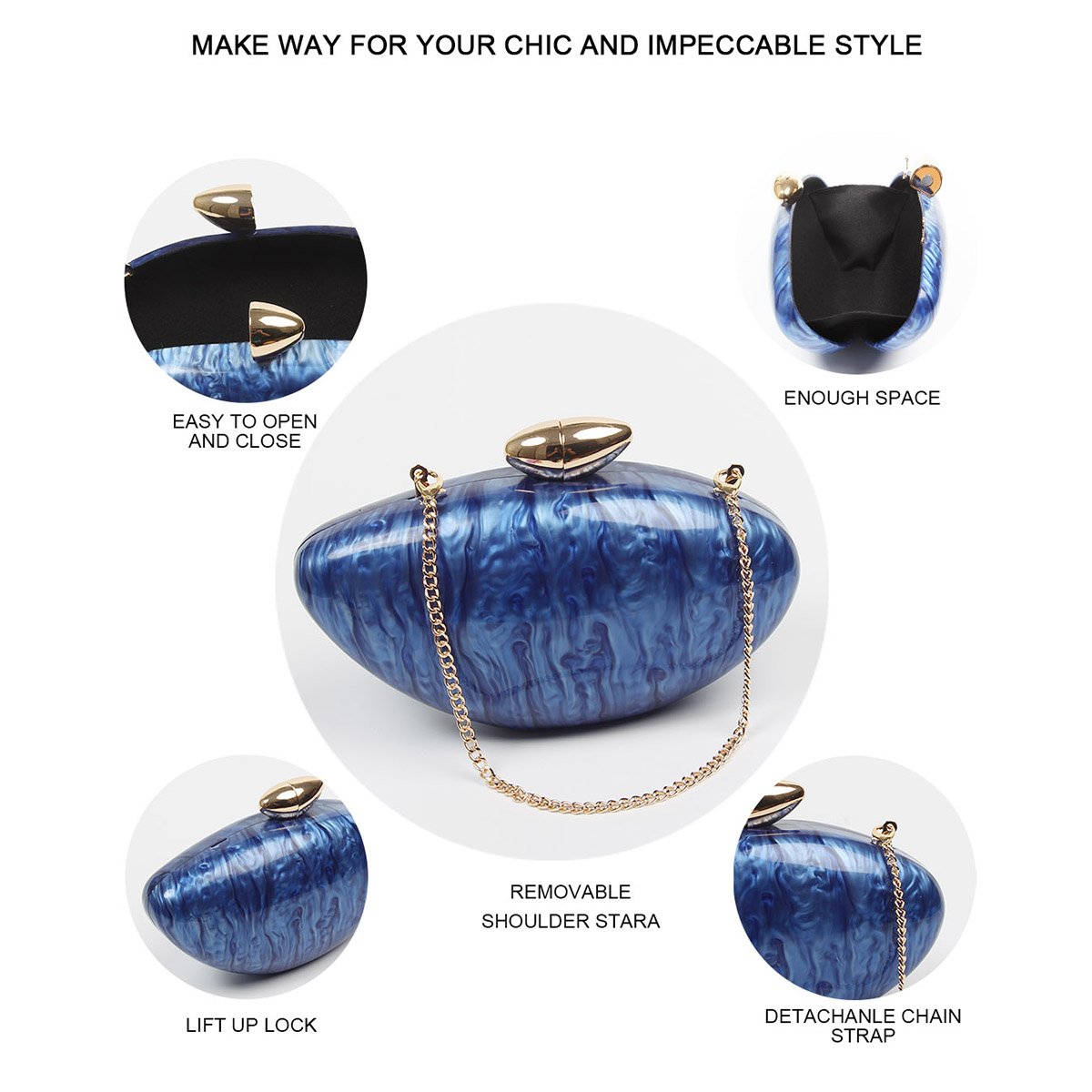 - 🌼【Material】 Our white evening clutch purses are made of glossy acrylic, durable, smooth, exquisite, fashionable, and personalized seashell geometric shapes.