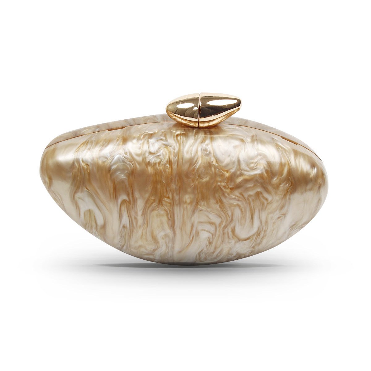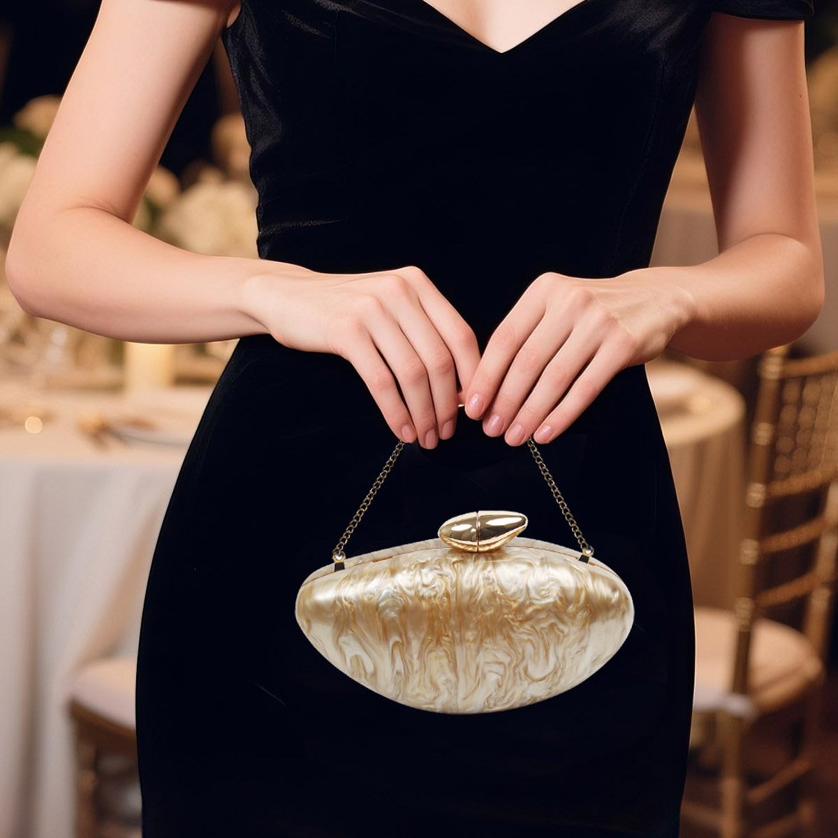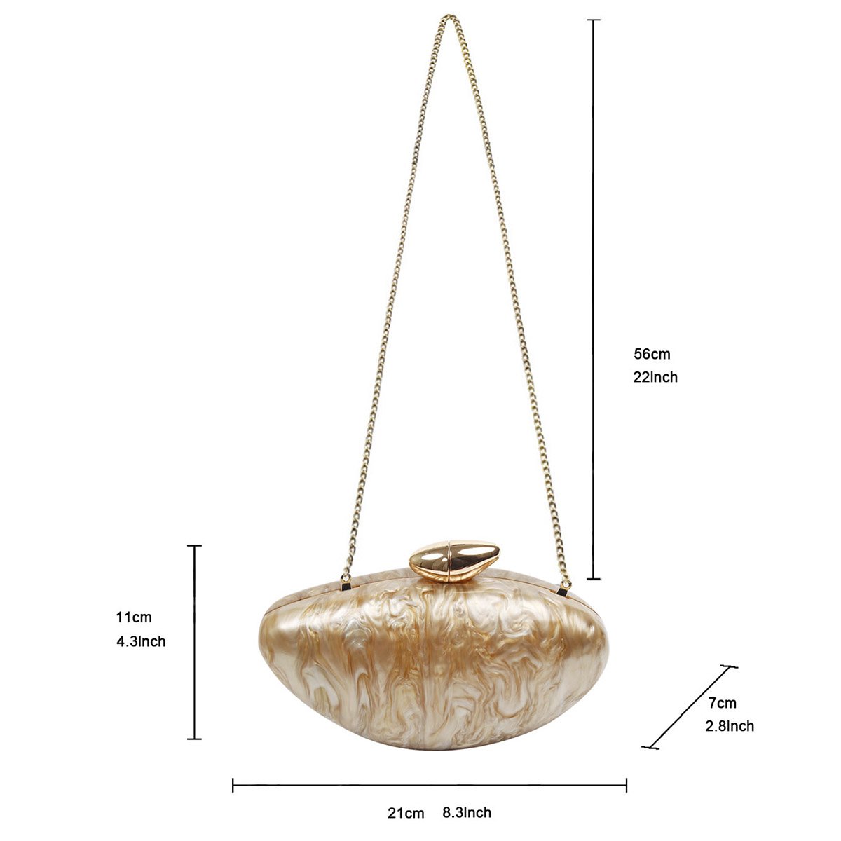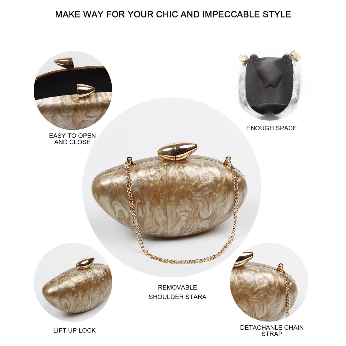 • 🌼【Material】 Our white evening clutch purses are made of glossy acrylic, durable, smooth, exquisite, fashionable, and personalized seashell geometric shapes.