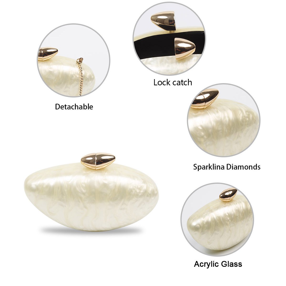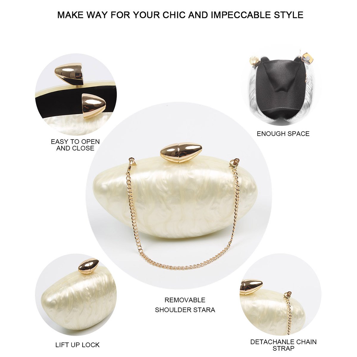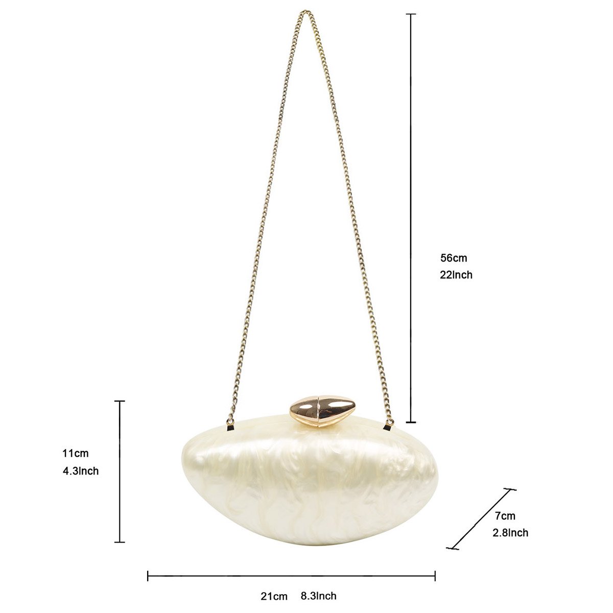 - 🌼【Material】 Our white evening clutch purses are made of glossy acrylic, durable, smooth, exquisite, fashionable, and personalized seashell geometric shapes.