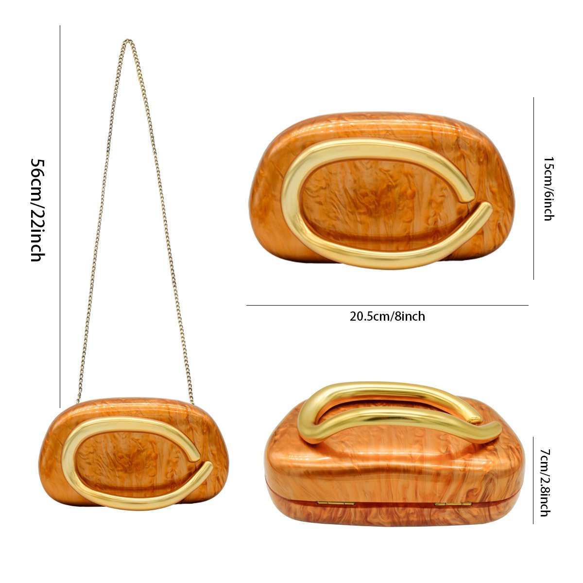 Light luxury acrylic Wedding Guest Clutch Metal Chain Shoulder Crossbody Bag Orange