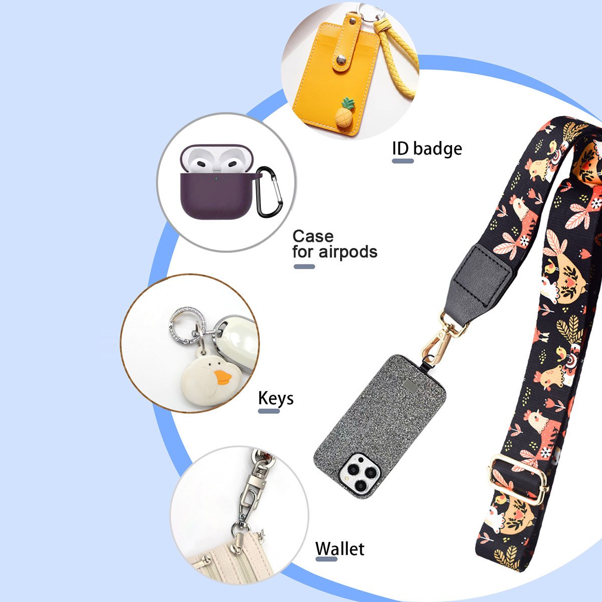 - PERSONALITY PATTERN: The unique embroidery pattern and cute style of the phone strap can meet your personalised look and make your phone more attractive. In addition to cell phones, your keys, ID case, wallets, headphones, bag and cameras are equally applicable.