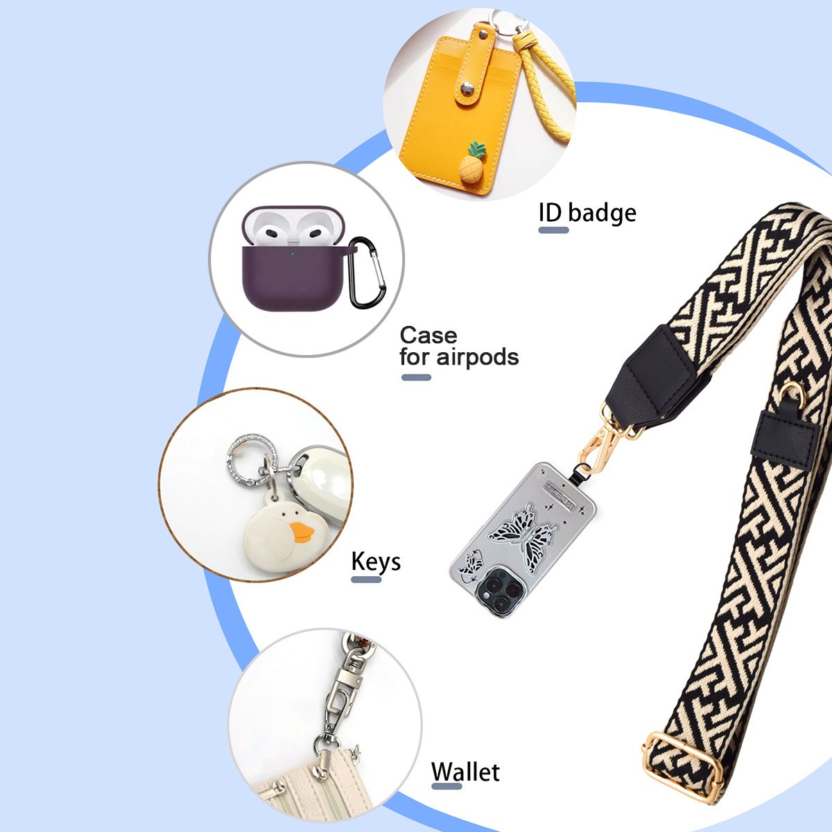 - PERSONALITY PATTERN: The unique embroidery pattern and cute style of the phone strap can meet your personalised look and make your phone more attractive. In addition to cell phones, your keys, ID case, wallets, headphones, bag and cameras are equally applicable.