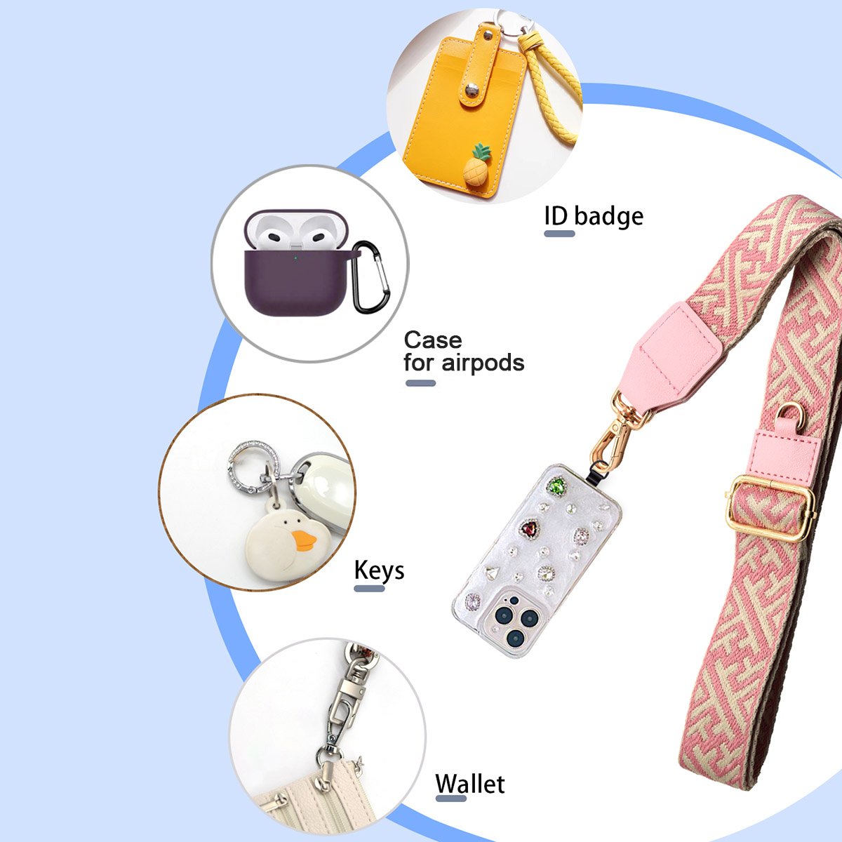 - ADJUSTABLE CELL PHONE LANYARD: The crossbody phone strap can be adjusted in length according to your usage scenario, adjustable from 32 inches to 56 inches. As cell phone accessories, a phone lanyard is particularly convenient when you need your hands free for other activities such as shopping, walking, running, outgoing, or traveling. Save the girls phone strap with walle.