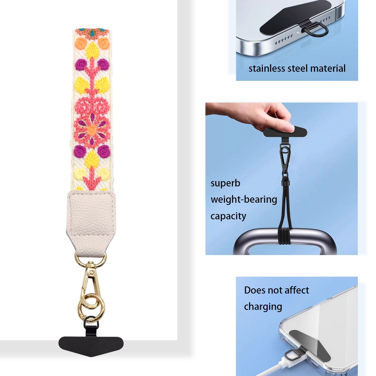 - PERSONALITY PATTERN: The unique embroidery pattern and cute style of the phone strap can meet your personalised look and make your phone more attractive. In addition to cell phones, your keys, ID case, wallets, headphones, bag and cameras are equally applicable.