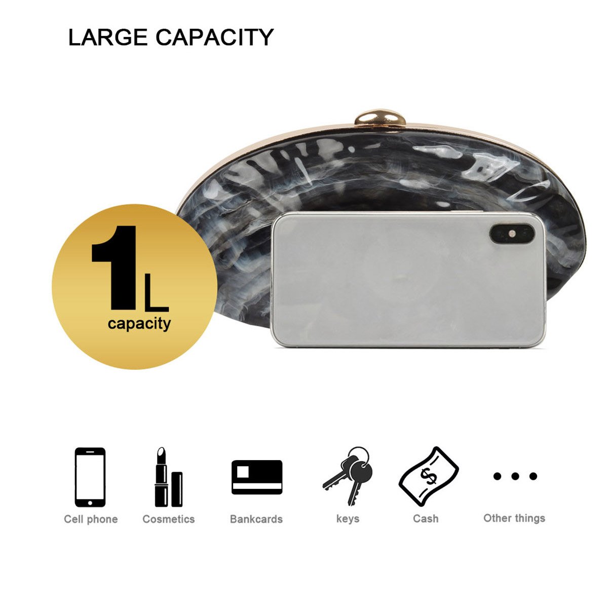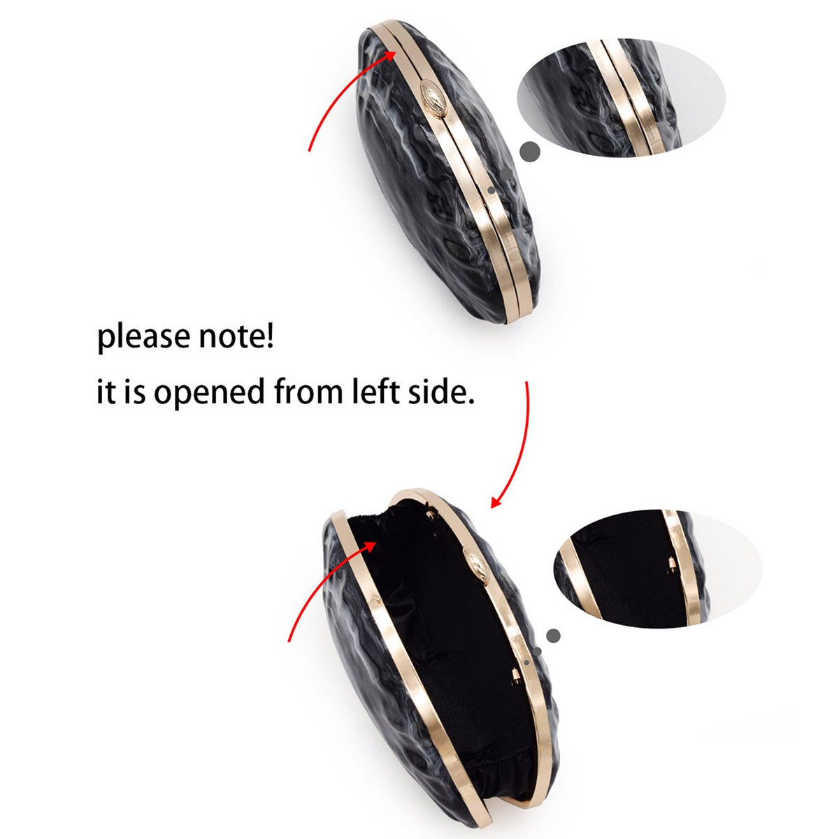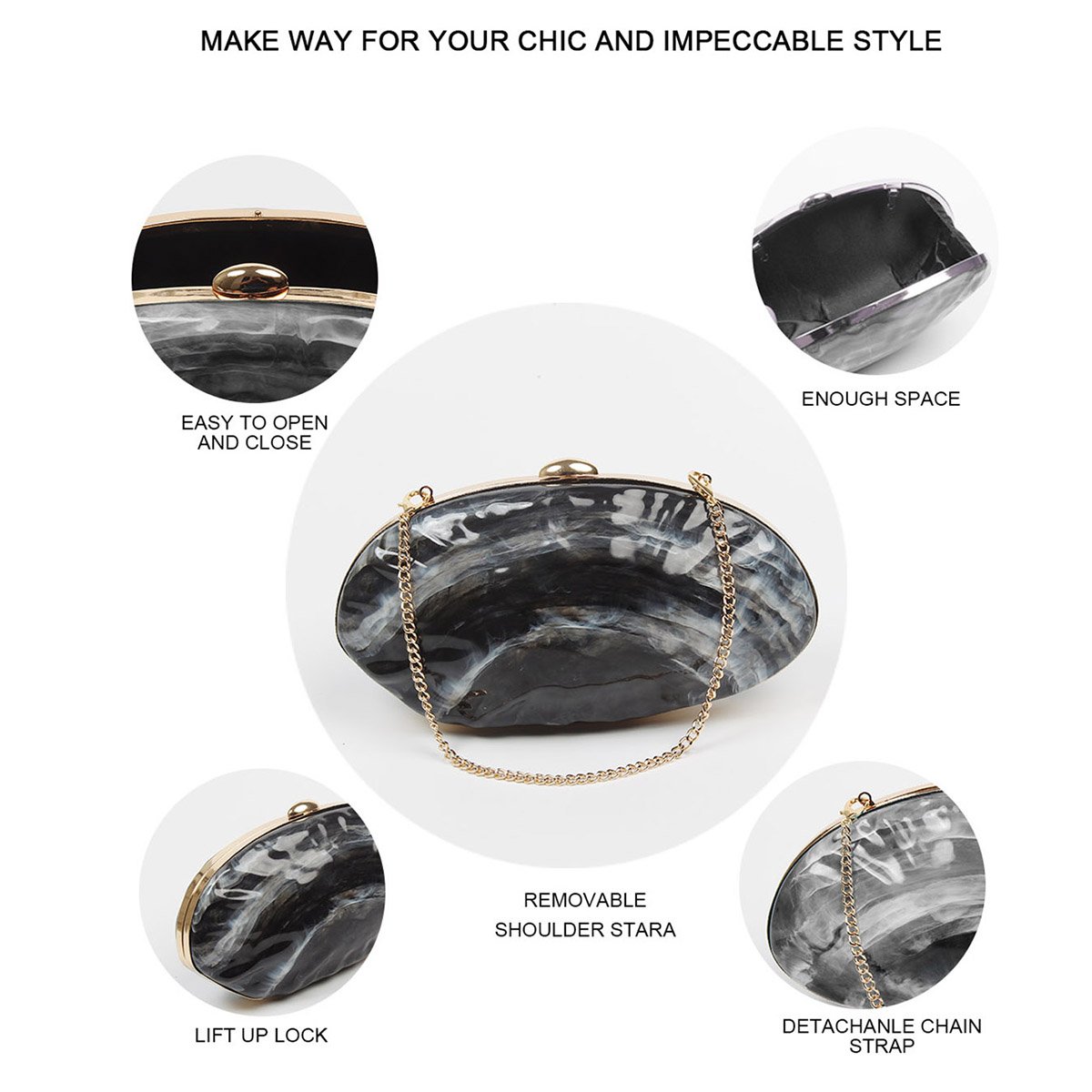 【Material】 Our evening clutch is made of high-end acrylic, with a layer of metal paint electroplated on the surface, which is not easy to fade, durable, smooth, exquisite, and fashionable. Adopting a magnetic buckle closure method for easy opening.