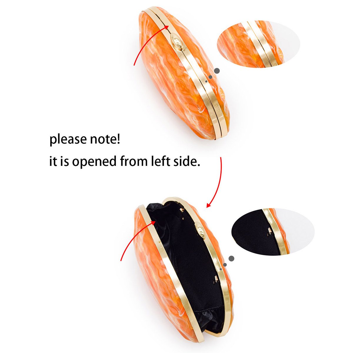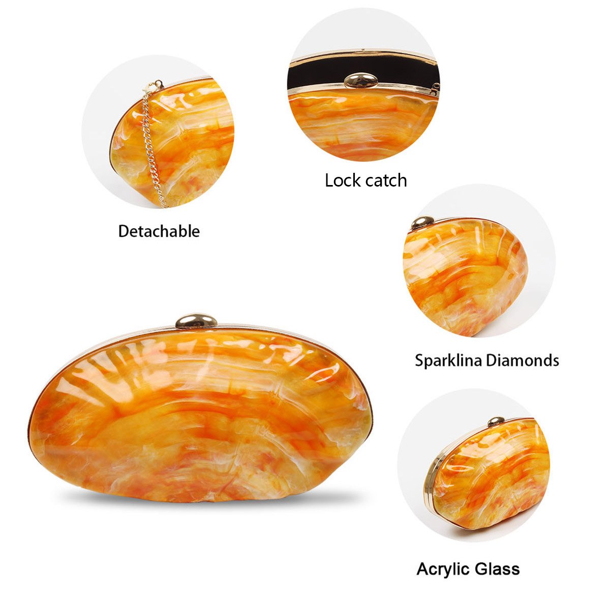 【Material】 Our evening clutch is made of high-end acrylic, with a layer of metal paint electroplated on the surface, which is not easy to fade, durable, smooth, exquisite, and fashionable. Adopting a magnetic buckle closure method for easy opening.