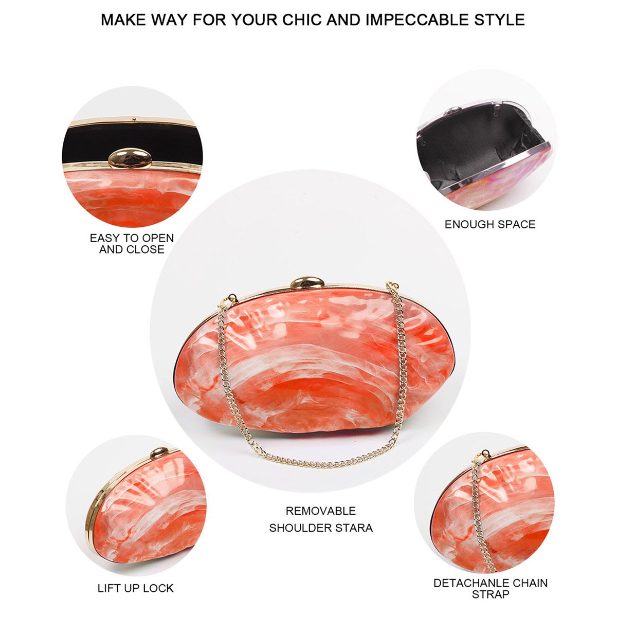 • 【Material】 Our evening clutch is made of high-end acrylic, with a layer of metal paint electroplated on the surface, which is not easy to fade, durable, smooth, exquisite, and fashionable. Adopting a magnetic buckle closure method for easy opening.
