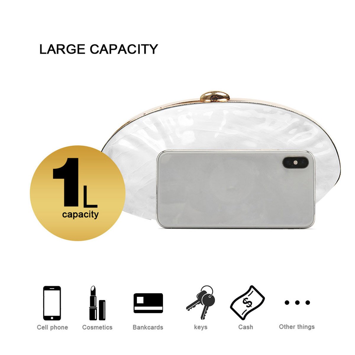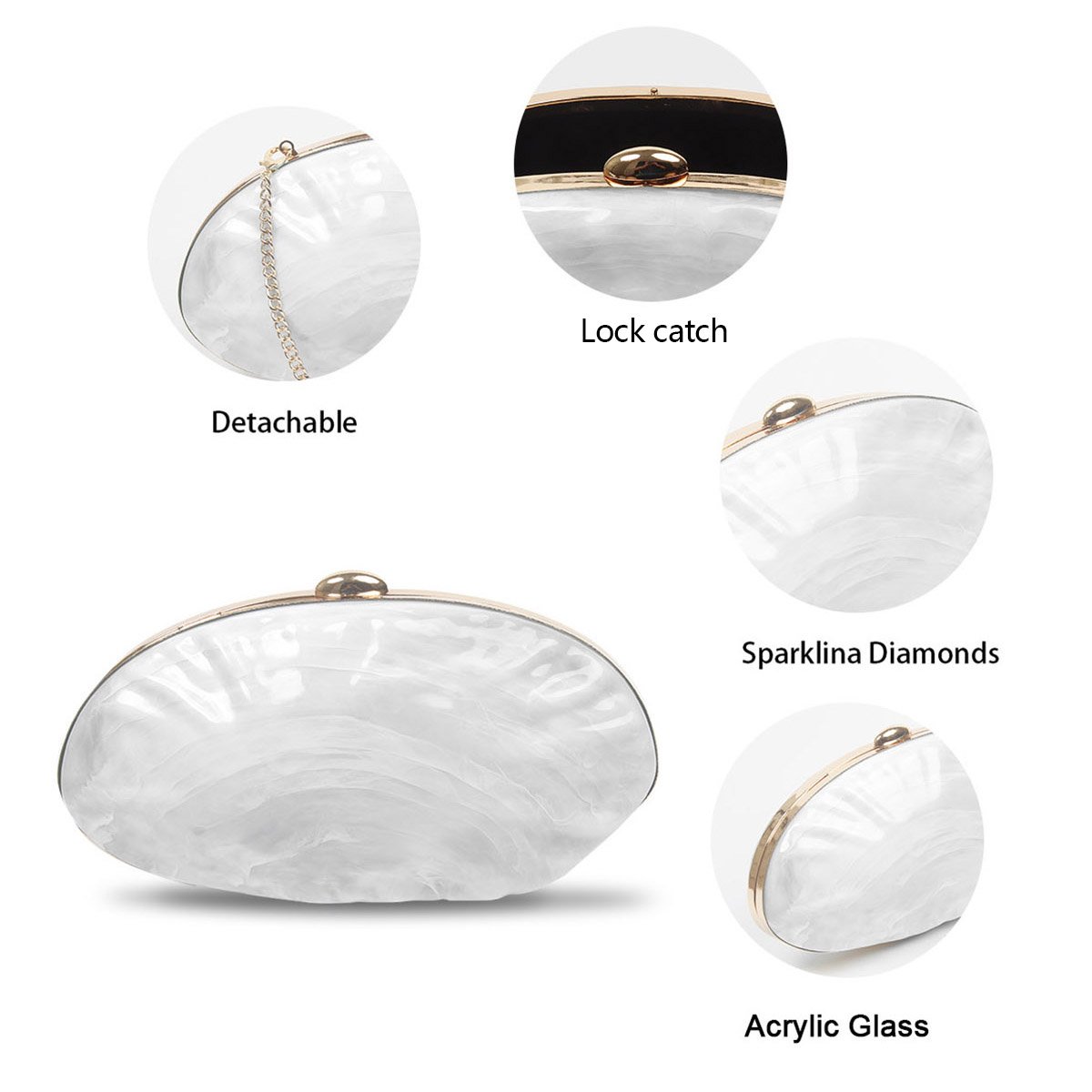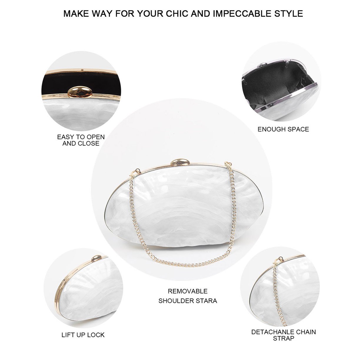 【Material】 Our evening clutch is made of high-end acrylic, with a layer of metal paint electroplated on the surface, which is not easy to fade, durable, smooth, exquisite, and fashionable. Adopting a magnetic buckle closure method for easy opening.