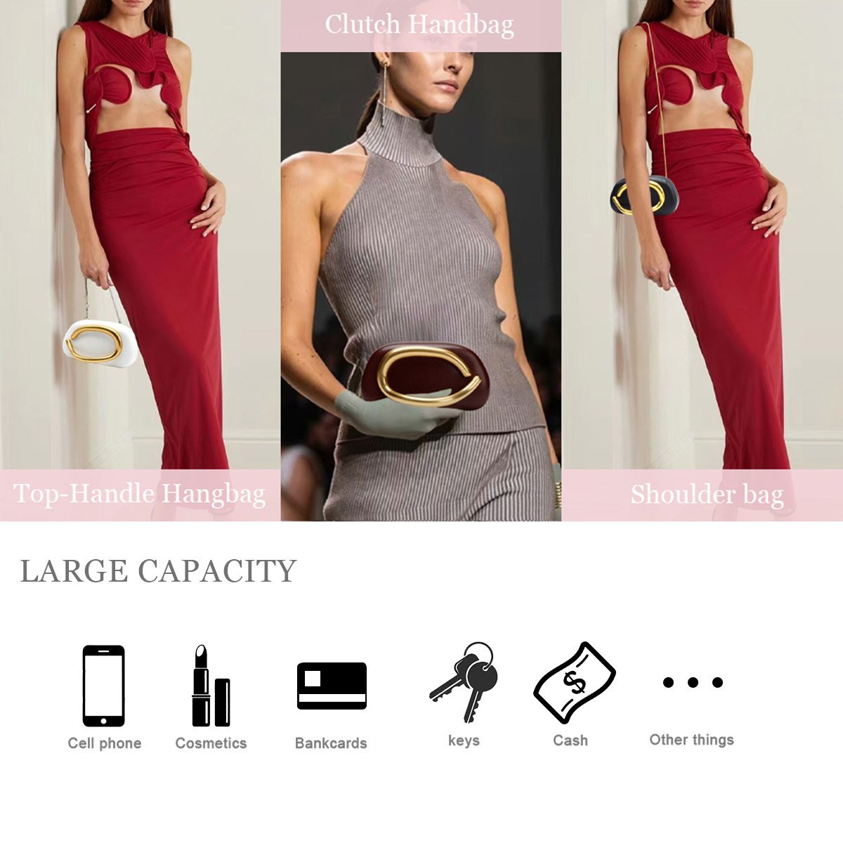 - 🌼【Material】 Our white evening clutch purses is made of soft PU leather, hand-woven, and have a high-quality gold decoration, durable, smooth, exquisite, fashionable, and personalized geometric shape.