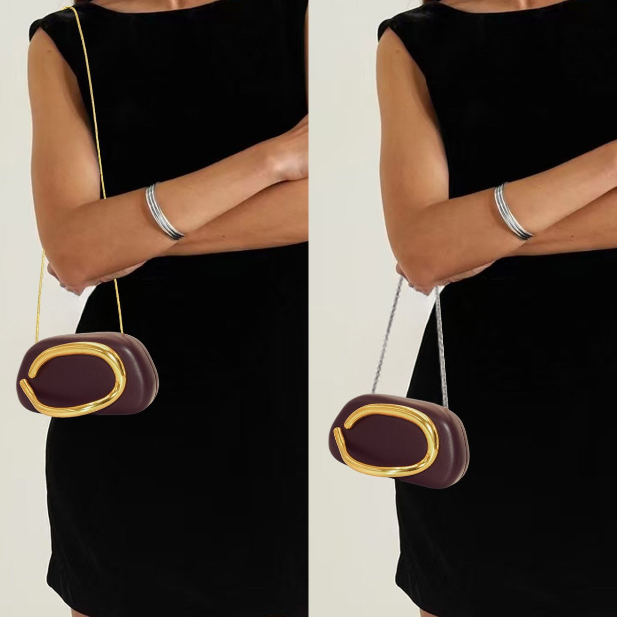 PU Leather Wedding Guest Clutch Metal Chain Shoulder Crossbody Bag Brown
