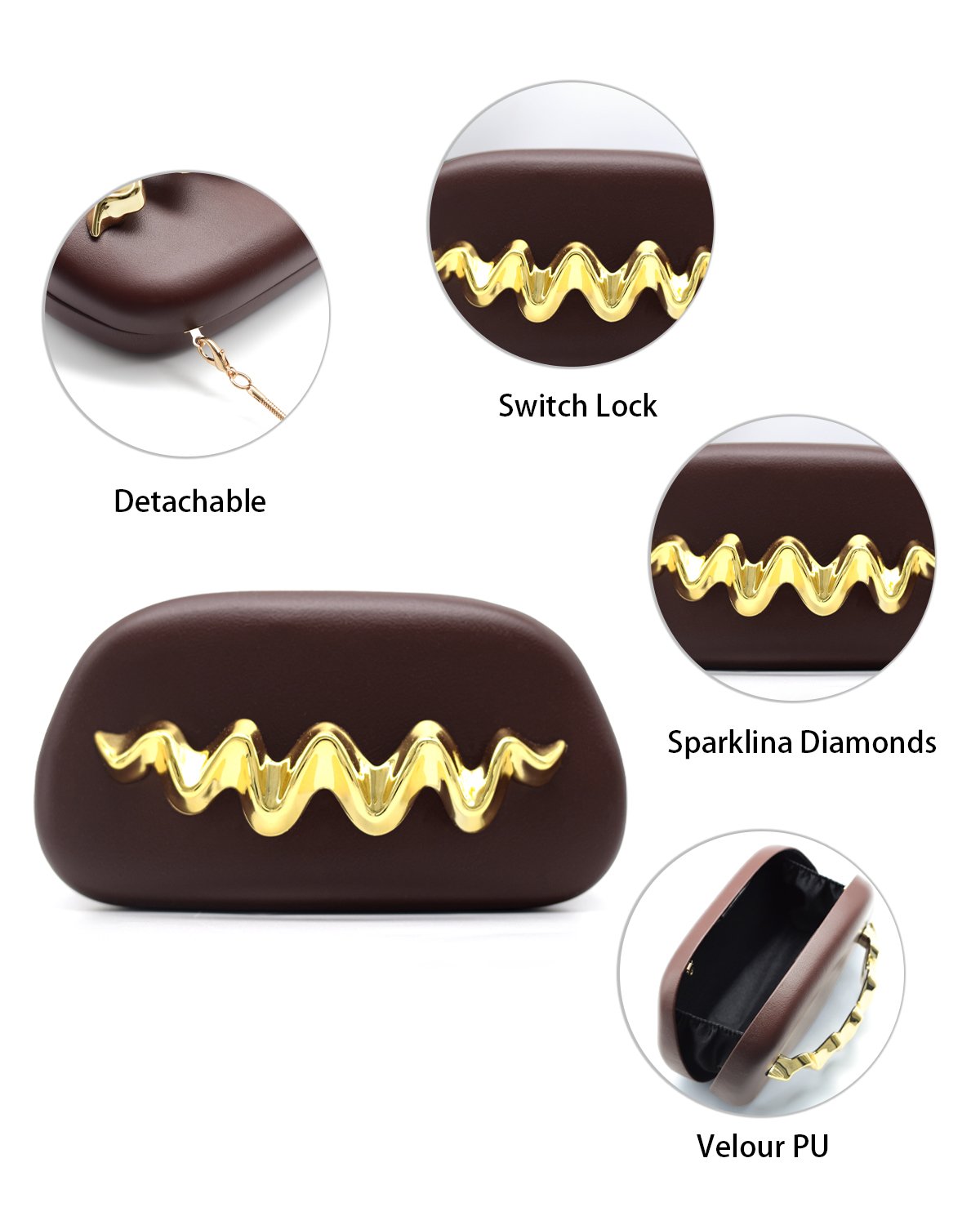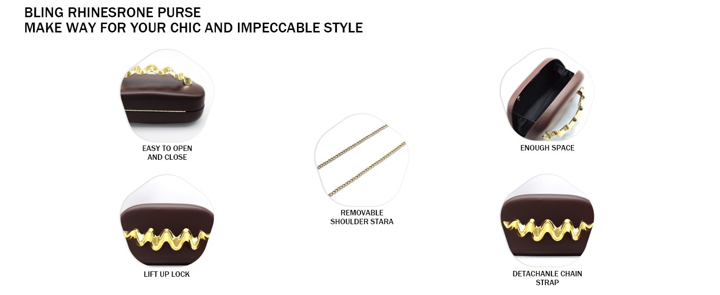 - 🌼【Multiple styles】 This gold clutch comes with one metal chain to accommodate different styles of use. It can be used as a bridal clutch, wedding guest clutch, or formal clutch. It is suitable for weddings, dances, banquets, cocktail parties, family gatherings, etc.