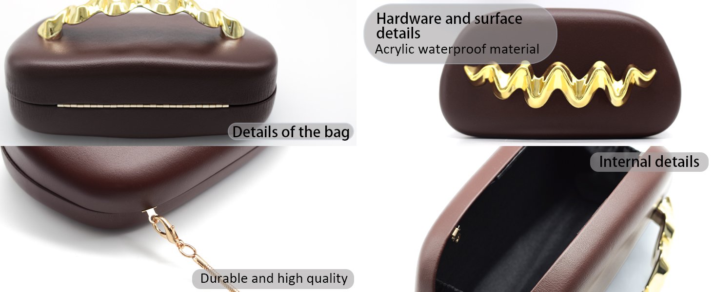 - 🌼【Material】 Our gold evening clutch purses are made of glossy acrylic and have a high-quality brass handle, durable, smooth, exquisite, fashionable, and personalized geometric shape.