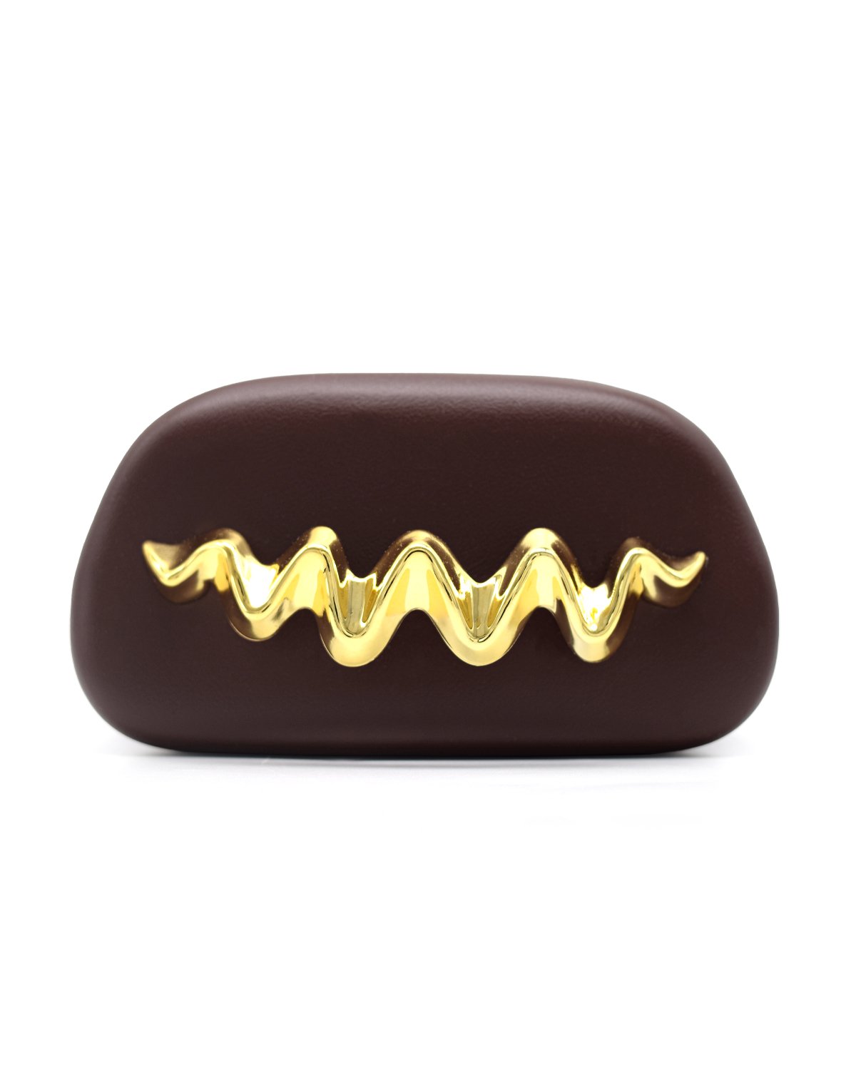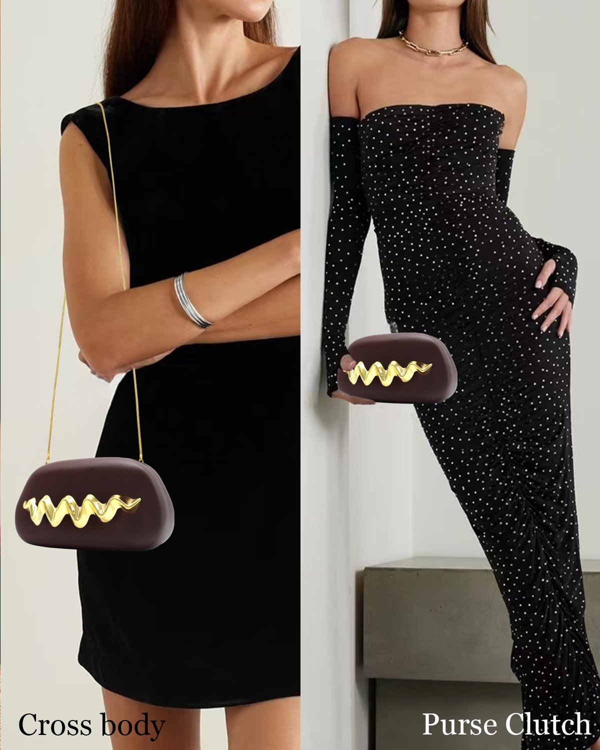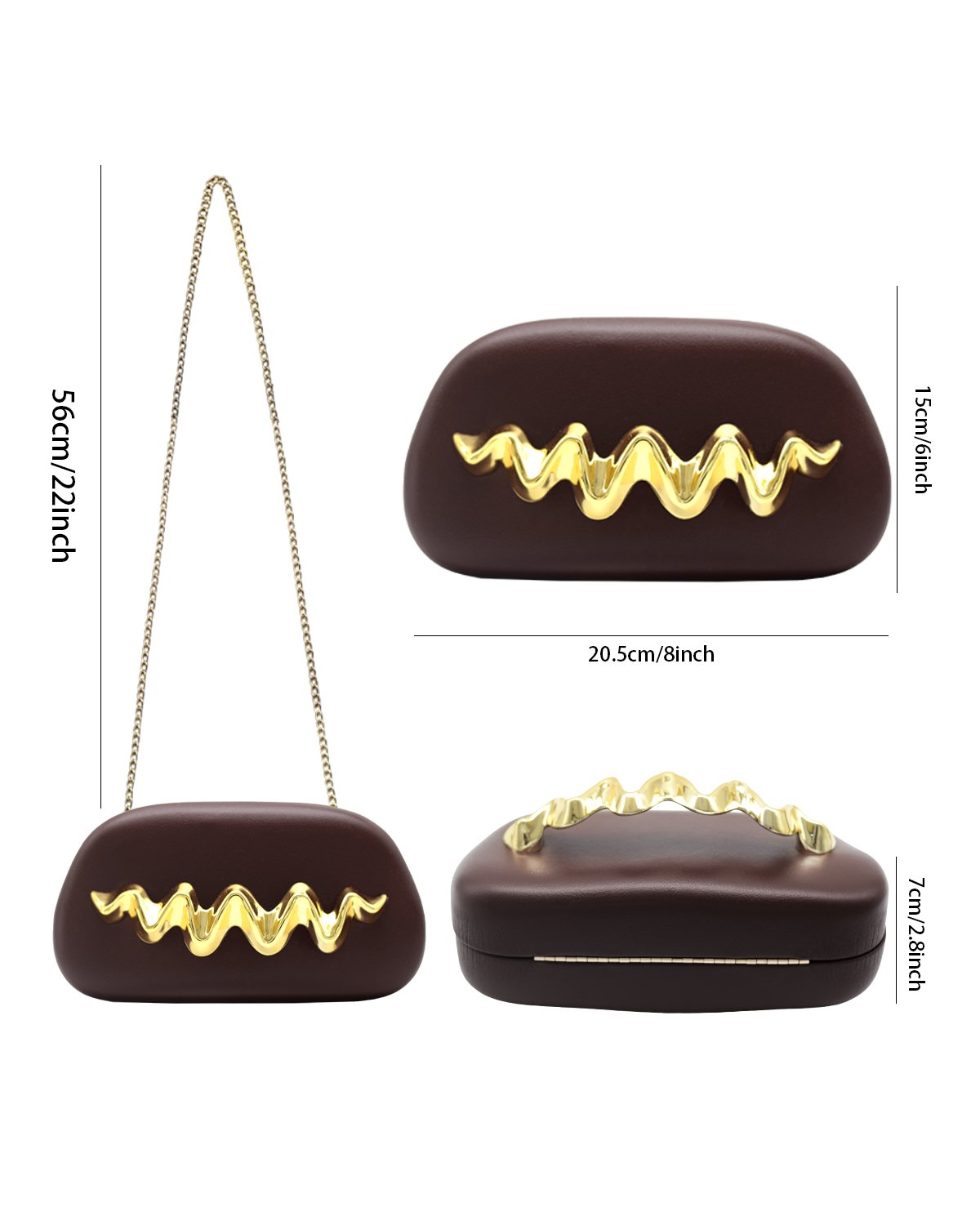Wave Handle Pu Dinner Bag,Metal Chain Shoulder Bag Set Brown